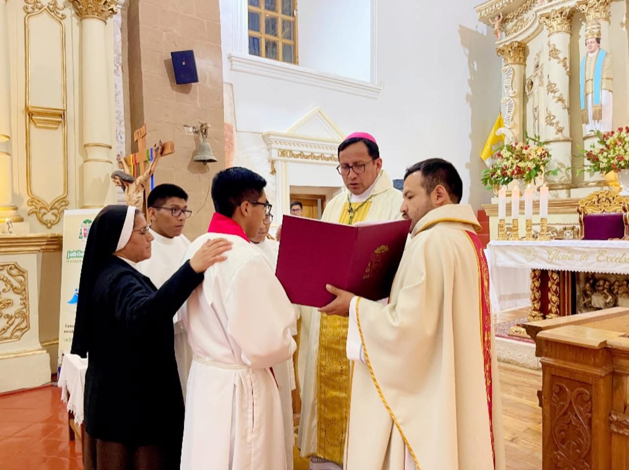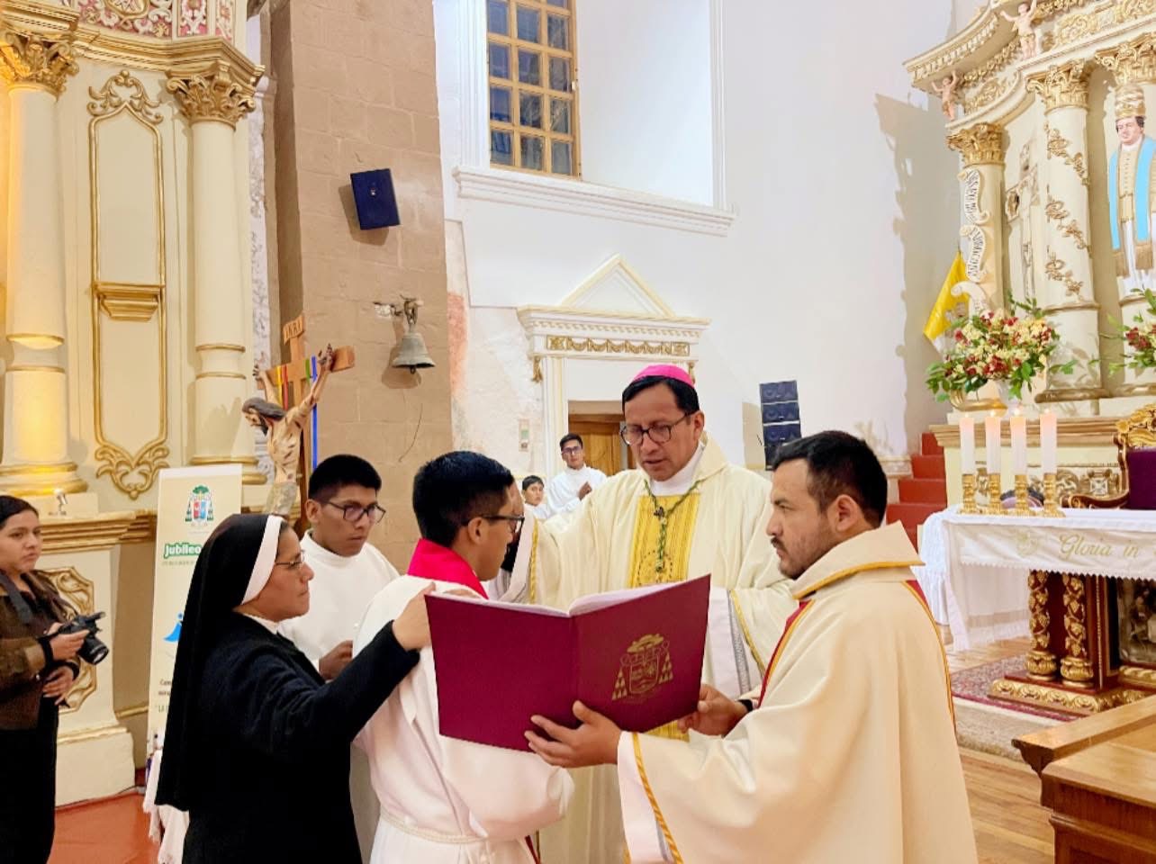 Durante esta significativa celebración eucarística, se vivieron momentos de especial gracia para la Iglesia diocesana, al celebrarse el sacramento de la Confirmación del seminarista Russbell Armando Quispe Huamaní, quien reafirmó su fe y compromiso en su camino vocacional. Asimismo, se llevó a cabo la Primera Comunión de nuestro acólito, marcando un momento de profunda alegría y cercanía al Niño Jesús, Pan de Vida.
